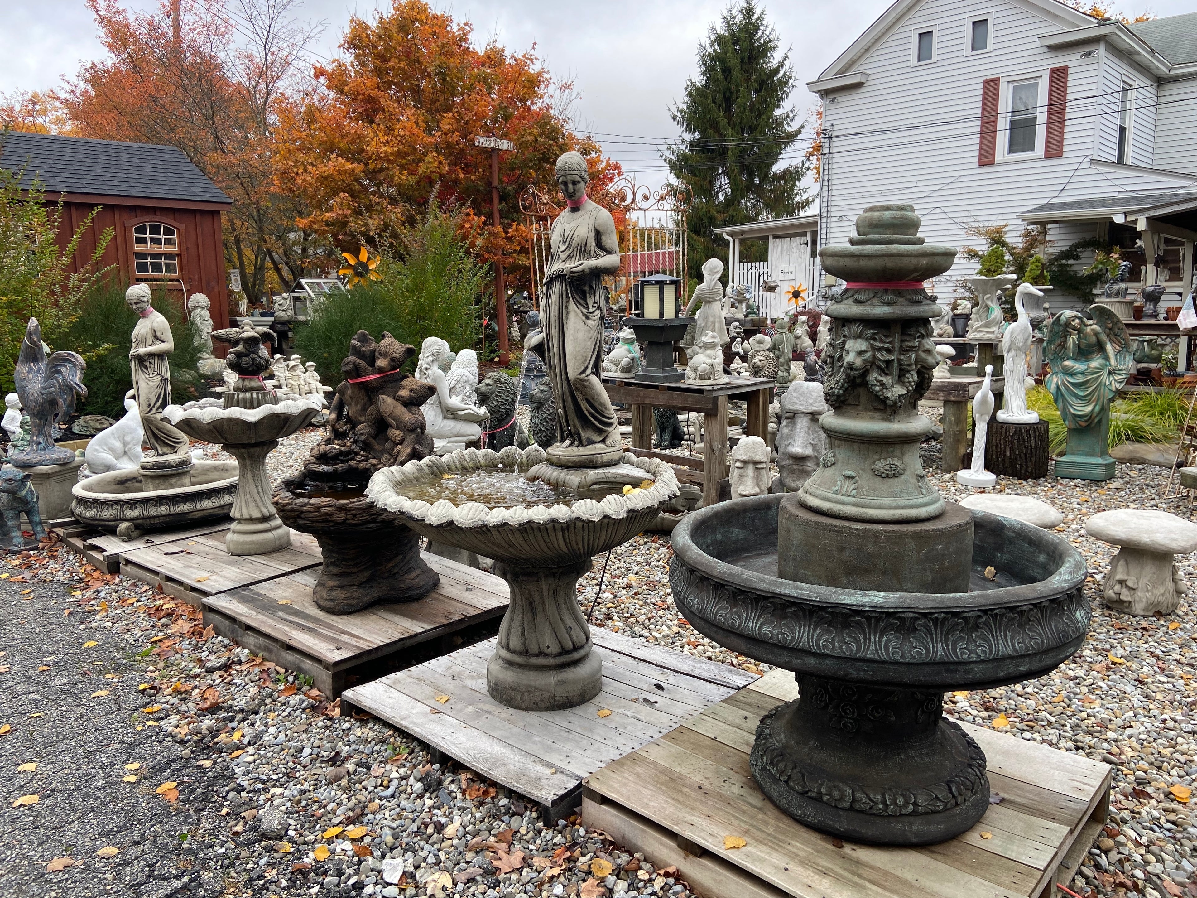 Welcome to Ziegler’s Statuary! We are a family owned business in Andover, New Jersey. We are located within The Andover Village. We started selling the statues here about 8 years ago and have a huge selection of statues, planters, fountains, birdbaths, benches, and so much more! We love giving people ideas and just helping them create their gardens and properties to be a place where they enjoy hanging out. Stop by and let’s see what we can do for you!